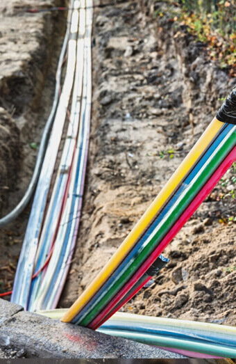 Complete installation of underground service cables from network pillars or pits to new properties, including all necessary trenching, conduit installation, and terminations.